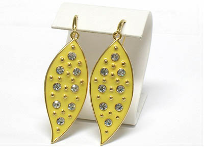 WHOLESALE CRYSTAL STUD COLORED METAL LEAVE EARRING 336628
