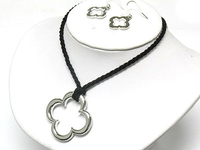 WHOLESALE METAL CLOVER PEANDANT AND CORD NECKALCE AND EARRING SET 336754