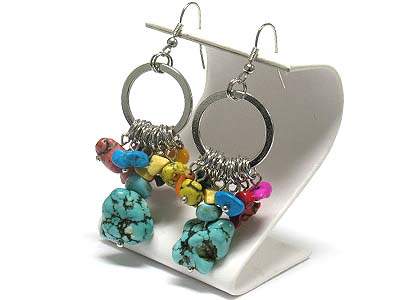 Colored natural stone cluster drop earring
