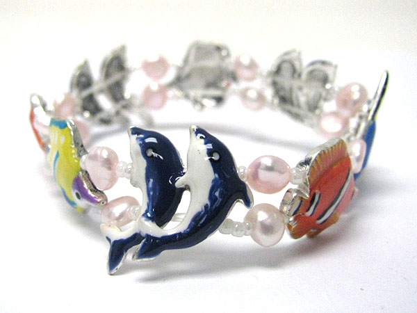 WHOLESALE TROPICAL FISH THEME METAL EPOXY STRETCH BRACELET 336820