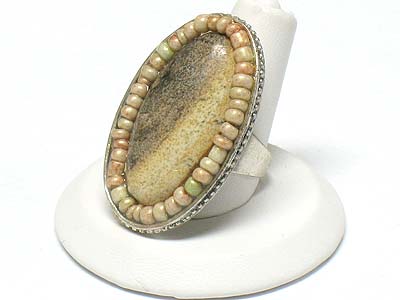 WHOLESALE NATURAL STONE OVAL FASHION RING -ADJUSTABLE SIZE 337008