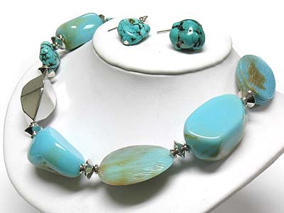 WHOLESALE NATURAL STONE AND PATINA CHUNKY BEADS NECKLACE AND EARRING SET 337018