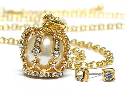 WHOLESALE PEARL INSIDE CRYSTAL CROWN NECKLACE AND EARRING SET 337111