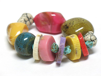 WHOLESALE GENUINE STONE AND MARBLIC BEADS STRETCH BRACELET 337243