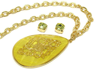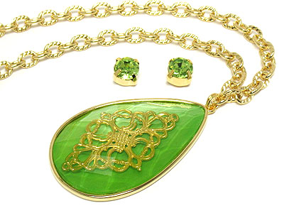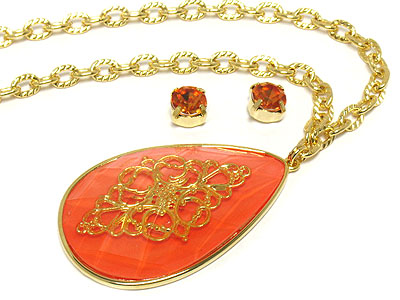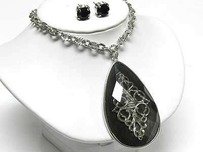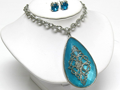 WHOLESALE METAL FILIGREE FACET TEAR DROP NECKLACE AND CRYSTAL EARRING SET 337268
