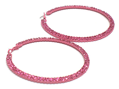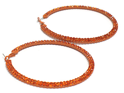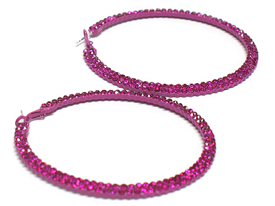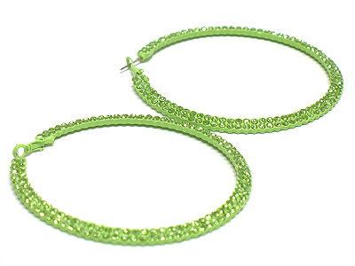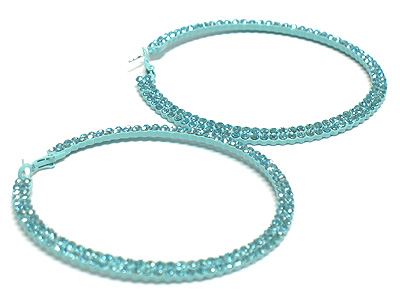 WHOLESALE DOUBLE ROW COLORED RHINESTONE AND METAL HOOP EARRING - HOOPS 337351