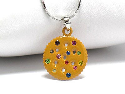 WHOLESALE CRYSTAL STUD COLORED METAL MINIATURE COOKIE NECKLACE 337822