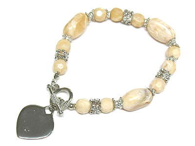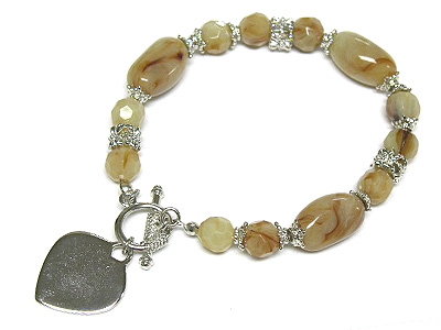 WHOLESALE HEART DANGLE MARBLE STONE LINK STRETCH BRACELET 337876