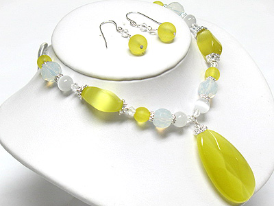 WHOLESALE FACET ACRYLIC STONE PENDANT BEADS NECKALCE AND EARRING SET 338044