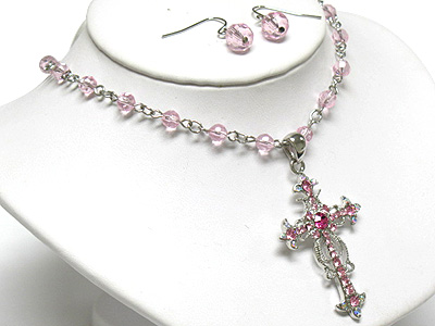 WHOLESALE CRYSTAL CROSS PENDANT AND BEADS CHAIN NECKLACE AND EARRING SET 338133
