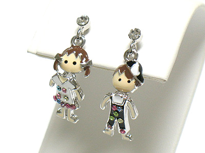 WHOLESALE MADE IN KOREA WHITEGOLD PLATING ENAMEL AND CRYSTAL BOY AND GIRL DROP EARRING 338159