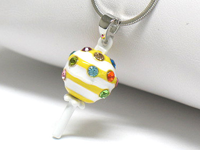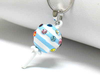 Made in korea whitegold plating crystal stud lollipop pendant necklace