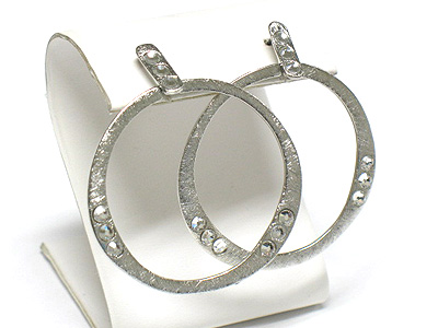 WHOLESALE CRYSTAL STUD SCRATCHED METAL HOOP EARRING - HOOPS - BRASS METAL 338399