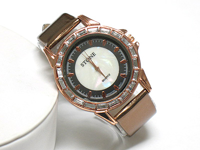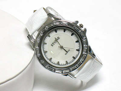 Acrylic stone deco leather band fashion watch