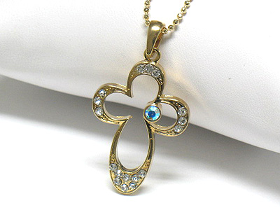 WHOLESALE CRYSTAL ROUND EDGE CROSS PENDANT NECKLACE 338559