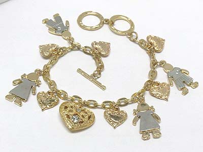 Crystal stud boy and girl charm dangle bracelet