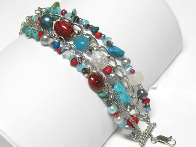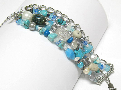 WHOLESALE MULTI ROW NATURAL STONE AND BEADS AND METAL CHAIN BRACELET 338604