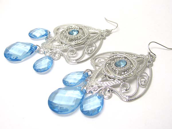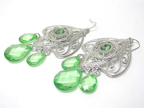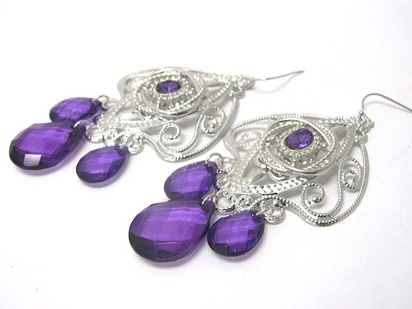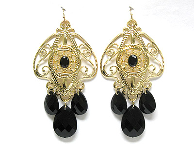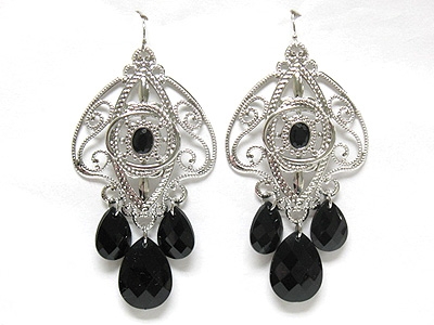 WHOLESALE METAL FILIGREE TOP AND FACET TEAR DROP EARRING 338619