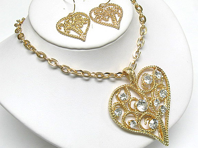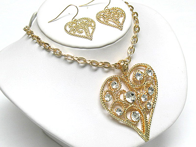 WHOLESALE METAL CASTING BIG HEART PENDANT NECKALCE AND EARRING SET 338639