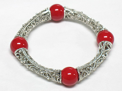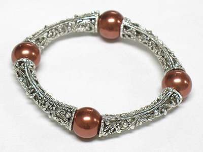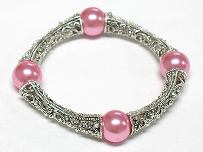 WHOLESALE PEARL BEADS AND METAL FILIGREE STRETCH BRACELET 338680