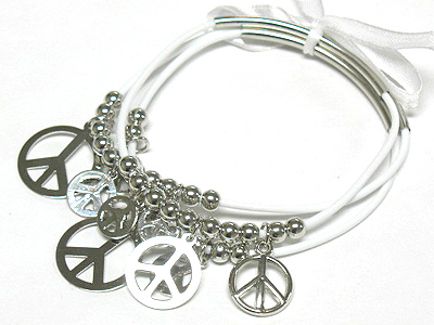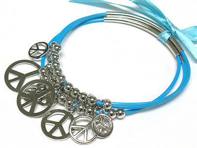 WHOLESALE MULTI PEACE MARK DANGLE RIBBON TIED CORD BRACELET 338769
