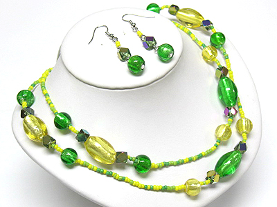 WHOLESALE SEED BEADS AND GLASS BEADS LONG NECKLACE AND EARRING SET 338879