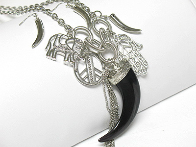 WHOLESALE HORN AND MULTI PENDANT DANGLE LONG NECKLACE AND EARRING SET 338972