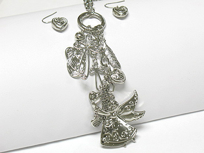 WHOLESALE ANGEL AND MULTI PENDANT DANGLE LONG NECKLACE AND EARRING SET 338979
