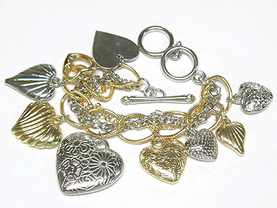 WHOLESALE MULTI METAL FILIGREE HEART CHARM DANGLE CHAIN BRACELET 339100