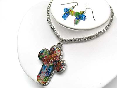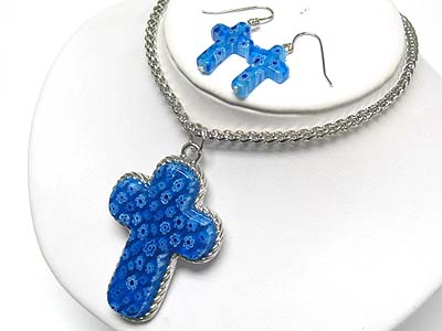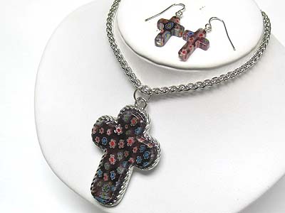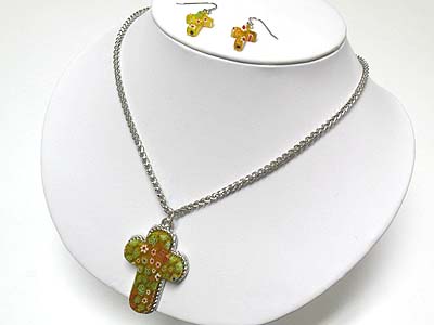 WHOLESALE FLOWER PATTERN CROSS PENDANT NECKALCE AND EARRING SET 339343