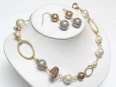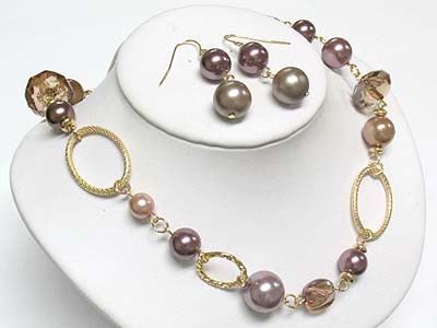 WHOLESALE GLASS PEARL AND METAL CHAIN EXTRA LONG NECKLACE AND EARRING SET 339458