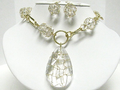 WHOLESALE METAL WIRE WRAPPED TERARDROP PENDANT AND METAL LINK NECKALCE AND EARRING SET 339736