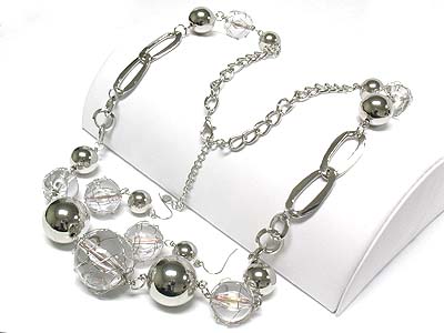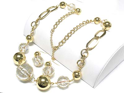 WHOLESALE METAL WIRE WRAPPED BALL AND METAL HOOP LINK LONG NECKALCE AND EARRING SET - HOOPS 339741