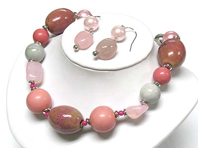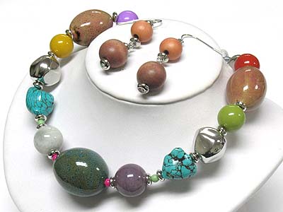 WHOLESALE MULTI NATURAL AND CERAMIC STONE MIXED NECKLACE AND EARRING SET 339809