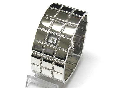 Crystal deco wide metal band watch