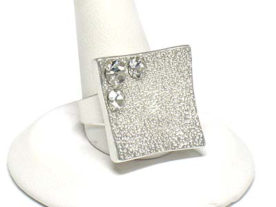 Crystal stud sand metal square fashion ring - adjustable size
