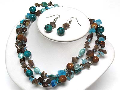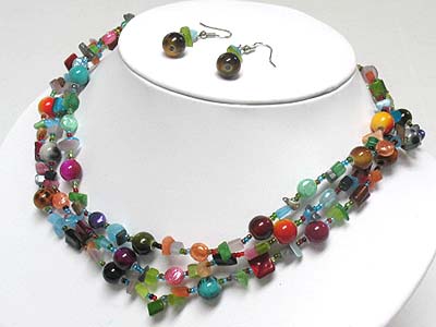 WHOLESALE MULTI STRAND MULTI BEADS NECKLACE AND EARRING SET 339945