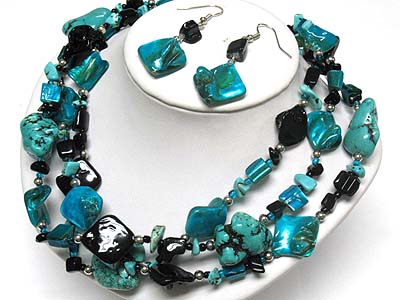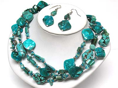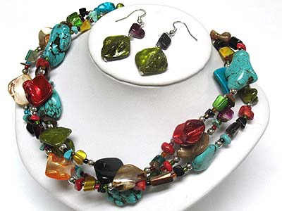 WHOLESALE MULTI STRAND TURQUOISE AND MULTI BEADS NECKLACE AND EARRING SET 339949