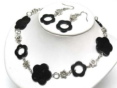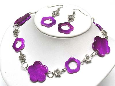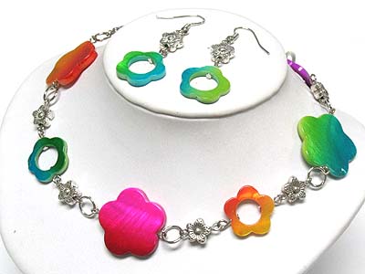 WHOLESALE DYED SHELL FLOWER LINK NECKLACE AND EARRING SET 340039