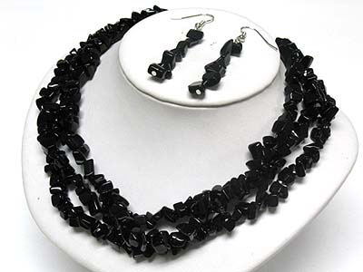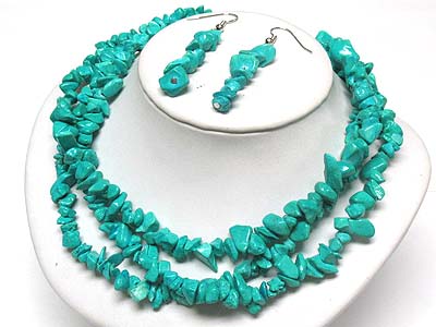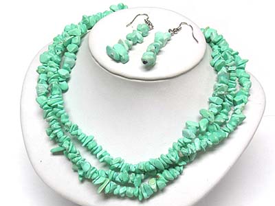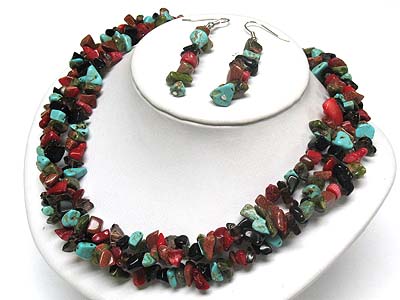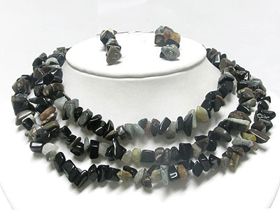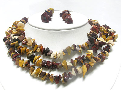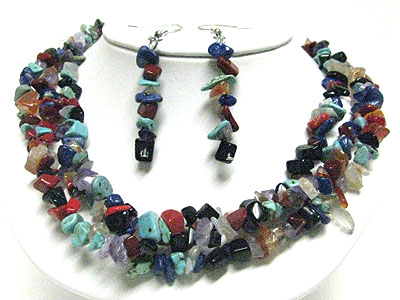 WHOLESALE MULTI STRAND NATURAL STONE PIECE LINK NECKLACE AND EARRING SET 340141