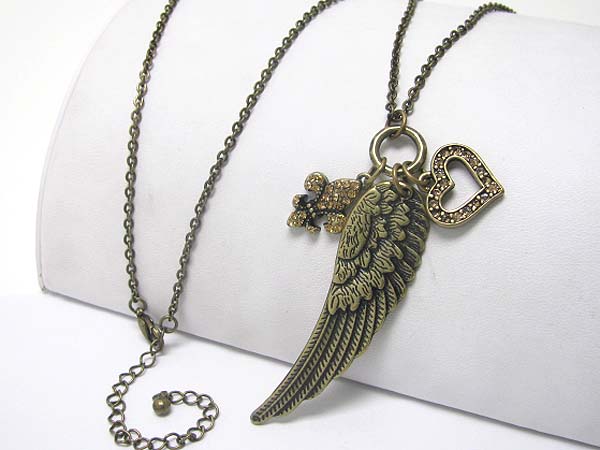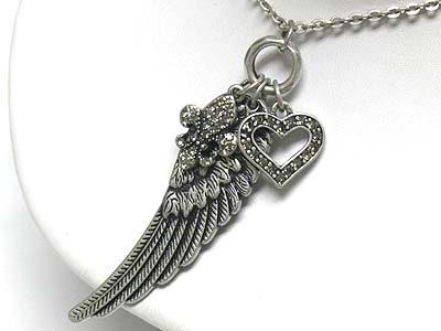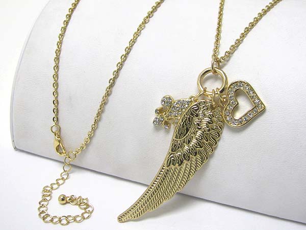 WHOLESALE CRYSTAL FLUER DE LIS HEART AND WING DANGLE LONG NECKLACE 340171