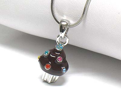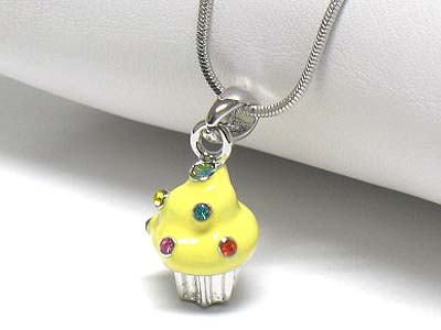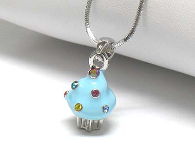 WHOLESALE WHITEGOLD PALTING CRYSTAL STUD ENAMEL MINIATURE CUPCAKE NECKLACE 340305