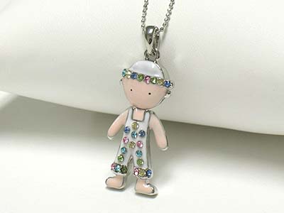 WHOLESALE CRYSTAL STUD ENAMEL METAL NODDING BOY PENDANT NECKLACE 340485