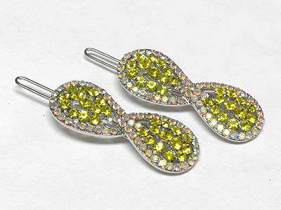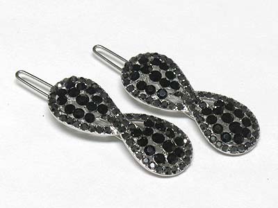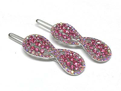 WHOLESALE CRYSTAL STUD RIBBON SHAPE HAIR PIN - 2 PC SET 340521