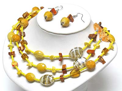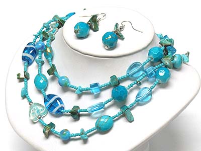 WHOLESALE MULTI BEADS AND STONE LONG NECKLACE AND EARRING SET 340622