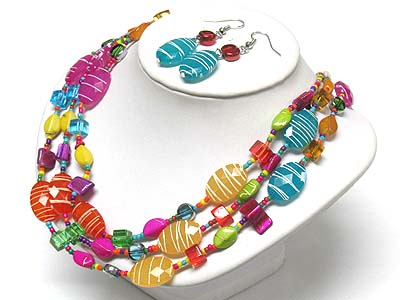 WHOLESALE MULTI BEADS AND STONE LONG NECKLACE AND EARRING SET 340628