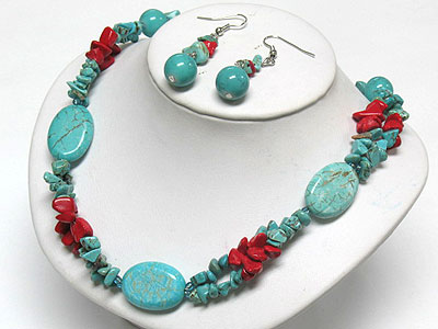 WHOLESALE TURQUOISE STONE AND MULTI CHIP STONE NECKLACE AND EARRING SET 340781
