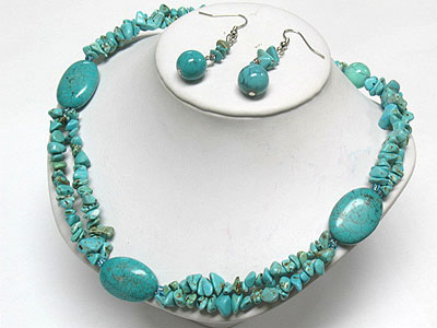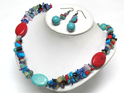 WHOLESALE CORAL STONE BALL AND CHIP STONE NECKLACE AND EARRING SET 340791