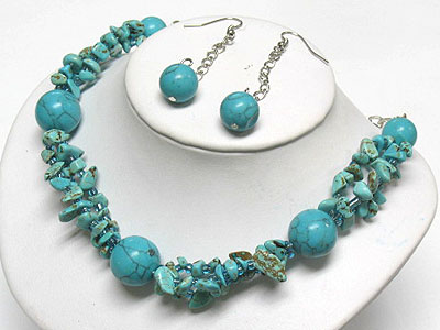 WHOLESALE ONYX STONE BALL AND CHIP STONE NECKLACE AND EARRING SET 340794