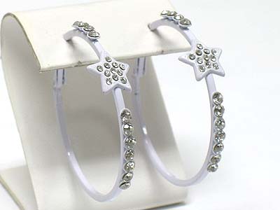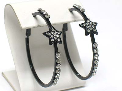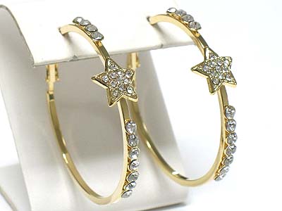 WHOLESALE CRYSTAL SIDE METAL HOOP EARRING - STAR - HOOPS 340846